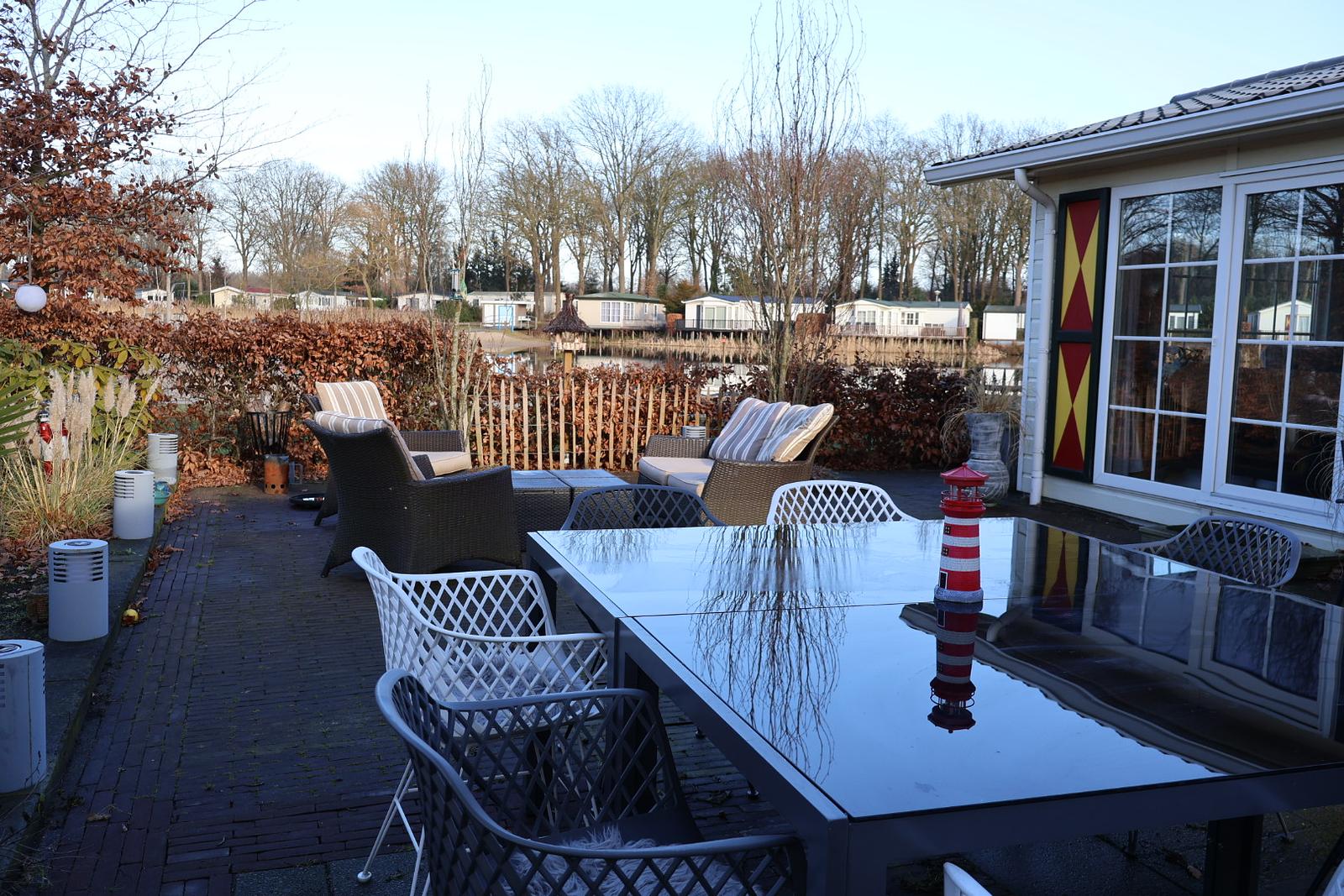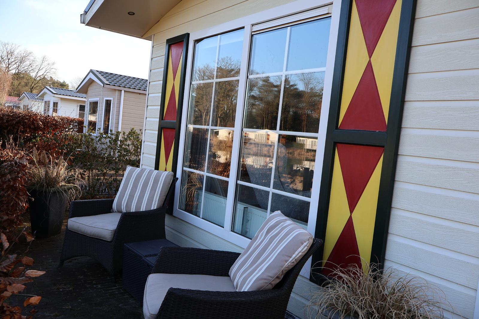 In de chalet is een badkamer aanwezig met een toilet, wastafel en een douche. Er is een keuken met gasstel, koelkast, koffiezetapparaat, magnetron, vaatwasser en overige keukeninventaris. De chalet is voorzien van CV, TV, wasmachine en een tuinset. Je kunt de auto parkeren op de parkeerplek bij de chalet of bij de ingang van het park op de parkeerplaats. Voor de nummers 317 t/m 365 geldt dat de auto geparkeerd kan worden aan het begin van het veld.